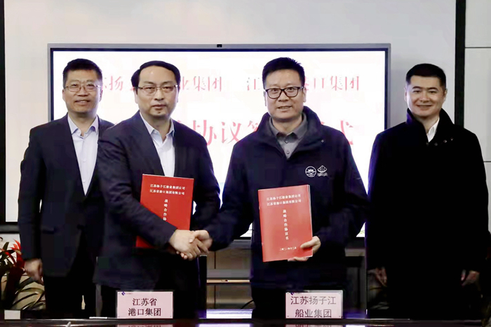 12月21日,揚(yáng)子江船業(yè)集團(tuán)與江蘇省港口集團(tuán)有限公司戰(zhàn)略合作協(xié)議簽訂儀式在南京下關(guān)大廈舉行。江蘇省港口集團(tuán)有限公司副總經(jīng)理譚瑞兵先生,我集團(tuán)副董事長(zhǎng)張宏飛先生代表雙方簽署了戰(zhàn)略合作協(xié)議。江蘇省港口集團(tuán)黨委副書記、總經(jīng)理關(guān)永健先生,我集團(tuán)董事長(zhǎng)兼總經(jīng)理任樂(lè)天先生,江蘇蘇港航務(wù)工程有限公司執(zhí)行董事金志忠先生等嘉賓共同見證。