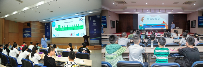 公司組織安排了“船人課堂”,為孩子更好地揭秘、解惑:新?lián)P子造船焊接工藝科科長錢曉強、揚子鑫福造船檢驗科張磊科長、分段車間姜海軍分別為孩子們上了一節(jié)《萬噸巨輪大揭秘》課程。老師們運用視頻展播、課堂實驗等直觀的體驗,深入淺出地揭開大船的奧秘,為孩子們帶來了一堂生動的船舶知識普及課,孩子們積極互動、主動回答。靖江實驗學(xué)校孫老師給孩子們帶來一堂生動有趣的趣味英語課堂《Home is best!》,讓孩子們感受到了課堂之外英語的獨特魅力。