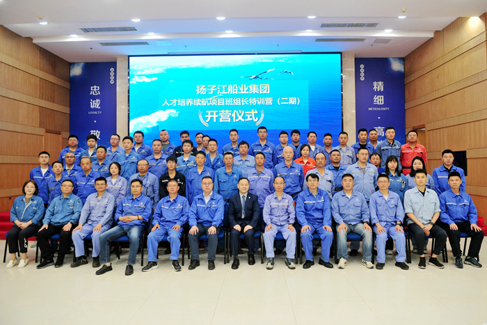 5月21日,揚子江船業(yè)集團人才培養(yǎng)續(xù)航項目第二期基本工班組長特訓(xùn)營開營儀式在新?lián)P子行政大樓多功能廳順利舉行。新?lián)P子造船副總經(jīng)理倪榮,新?lián)P子造船總經(jīng)理助理兼集團綜合管理部部長茆宏兆,揚子鑫福造船總經(jīng)理助理劉銀君,以及各子公司生產(chǎn)管理部、質(zhì)量管理部、綜合管理條線的相關(guān)領(lǐng)導(dǎo)、特訓(xùn)營所有學(xué)員、行動導(dǎo)師,共計82人參加了開營儀式。