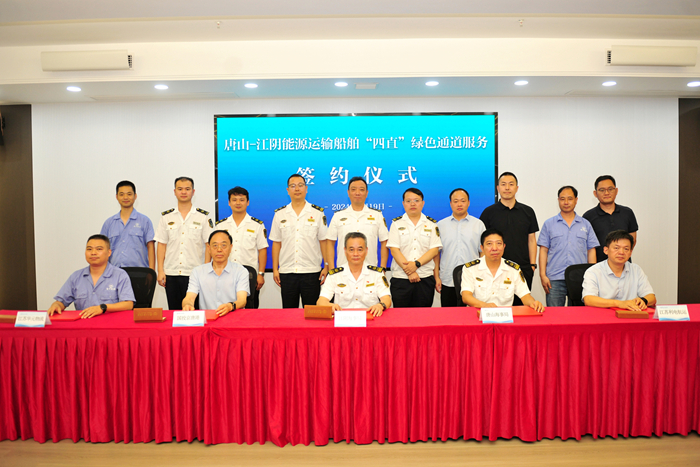 9月19日,蘇冀能源運(yùn)輸船舶“四直”綠色通道暨唐山-江陰能源物資運(yùn)輸保障政企協(xié)作機(jī)制五方簽約儀式在揚(yáng)子江船業(yè)集團(tuán)舉行。江陰海事局副局長朱波、唐山海事局副局長董林寶、國投京唐港副總經(jīng)理張允利、江蘇利電航運(yùn)有限公司總經(jīng)理羊建鋒、揚(yáng)子江航運(yùn)中心總經(jīng)理費(fèi)東京等領(lǐng)導(dǎo)出席簽約儀式。