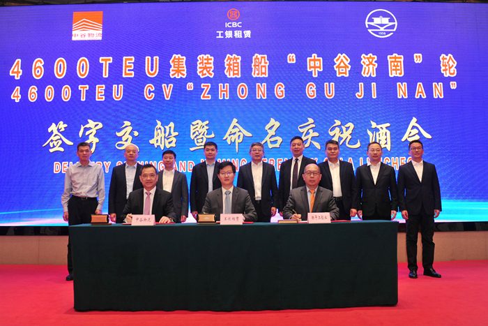 On the day of naming, the delivery ceremony of "ZhongguJinan" was successfully completed under the witness of many guests. Mr.Jia Hao, Head of Shipping Finance Division of ICBC Financial Leasing Co., Ltd.,Mr. Xia Guoqing, Vice President of Zhonggu Shipping Group, and Mr. Zhang Tao,Deputy General Manager of our group, respectively signed the delivery documentson behalf of all parties.