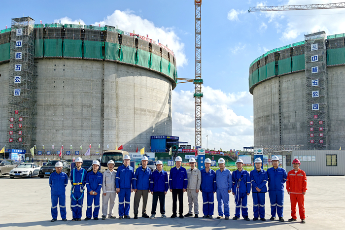 該項(xiàng)目單臺(tái)LNG儲(chǔ)罐拱頂重量達(dá)463噸,氣壓頂升作業(yè)屬超過(guò)一定規(guī)模的危險(xiǎn)性較大的分部分項(xiàng)工程,技術(shù)難度與風(fēng)險(xiǎn)管控要求極高。集團(tuán)統(tǒng)籌資源,聯(lián)合中國(guó)五環(huán)工程有限公司、中國(guó)核工業(yè)第五建設(shè)有限公司,通過(guò)對(duì)氣頂升五大核心系統(tǒng)聯(lián)合檢查驗(yàn)收和全流程精準(zhǔn)調(diào)控,最終實(shí)現(xiàn)拱頂安全平穩(wěn)就位,充分體現(xiàn)了集團(tuán)在大型能源基礎(chǔ)設(shè)施建設(shè)領(lǐng)域的專業(yè)化管理能力和"造船+"管理體系優(yōu)勢(shì)。