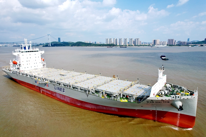 On August 2nd, YangziChangbo delivered the 1800TEU container ship "WAN HAI 178 " to ShangjingLogistics Co., Ltd. by electronic signing. It departed from theshipyard wharf at noon on the same day and started its maidenvoyage.